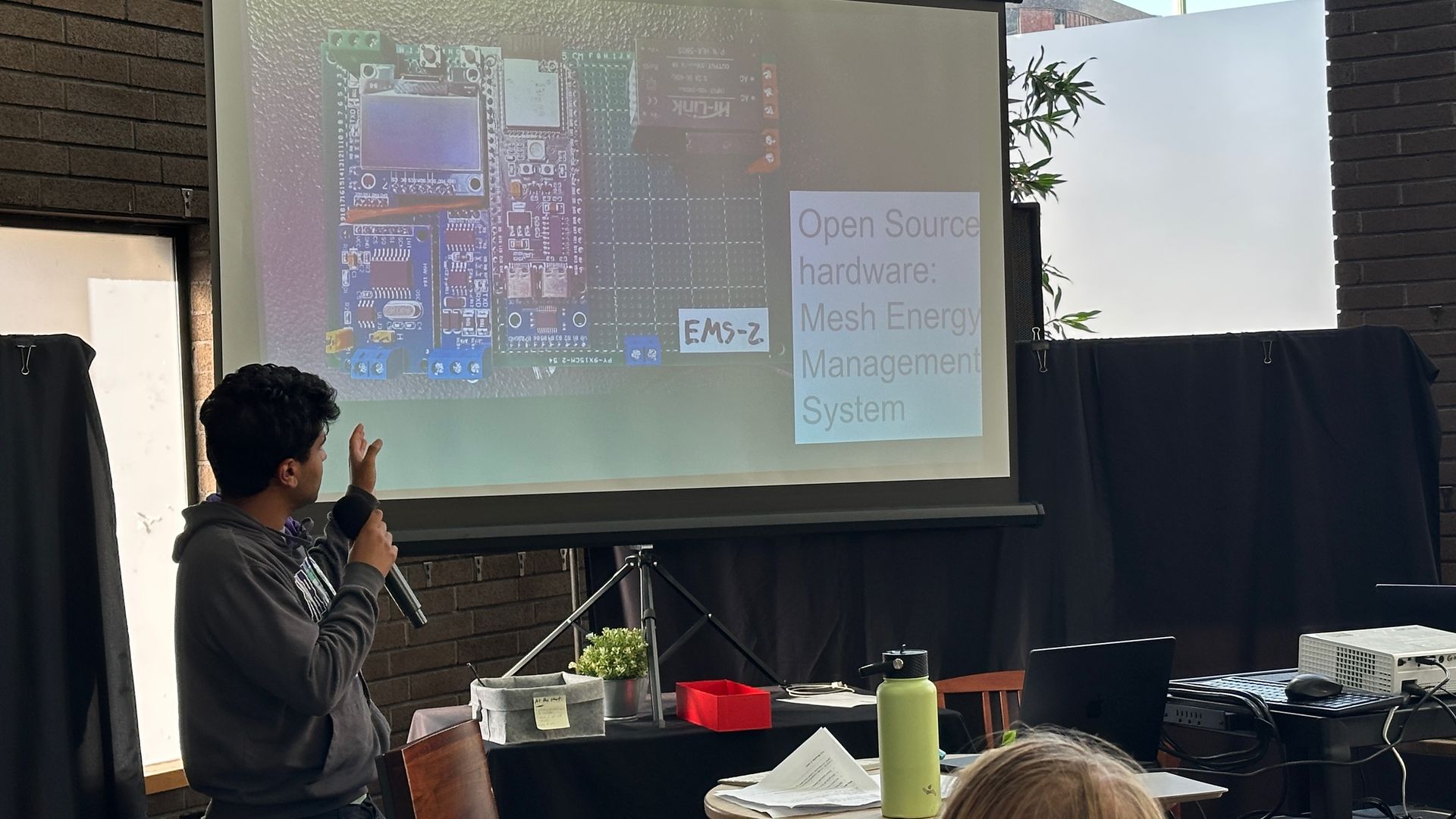 Kyle kicked things off with a lively introduction, complete with a crowd cheer (yes, that happened!). I shared slides on community microgrids from Elaine Baker, a volunteer with Energy IoT Open Source and Own Our Power, then I gave a high-level overview of the Energy IOT Open Source vision, and a live SunSpec demo that worked flawlessly thanks to some smart prep.