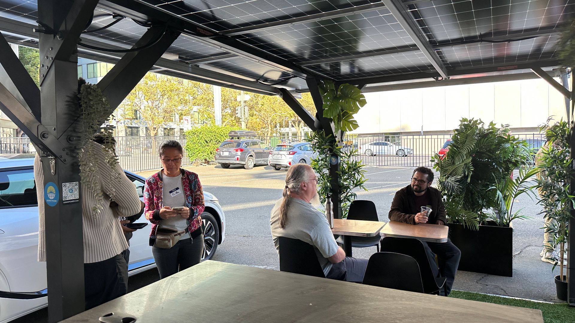 After the presentations, we all moved outside to the microgrid itself. The weather was perfect — the late afternoon sun was warm, and small groups formed naturally. People asked thoughtful questions, dove into discussions, and explored the gizmo setup together. Even 20 minutes after the official end, about ten people were still there, talking and touring the lab.